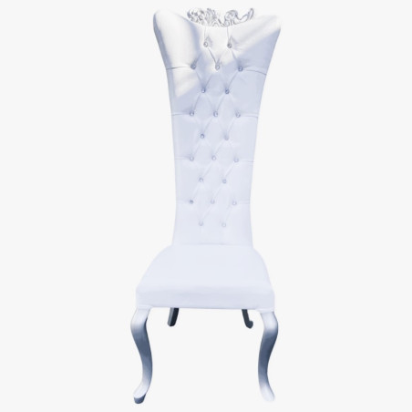 Fauteuil trône daya blanc argent haut dossier x2 location